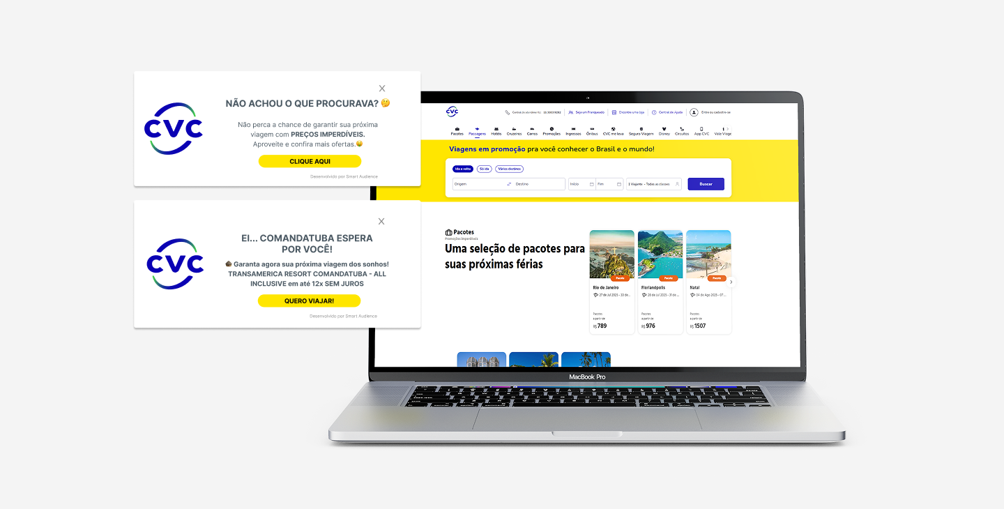 Segmentações dinâmicas por perfil de interesse e interação com páginas de destinos e pacotes.